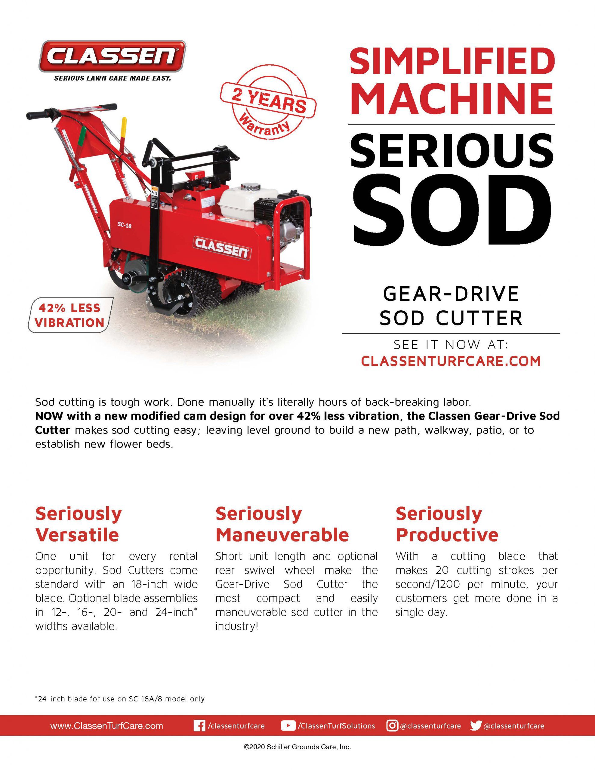 Il leva zolle Classen semovente rende facile il taglio delle zolle e la loro asportazione per costruire nuovi sentieri, vialetti, o per creare nuove aiuo le. ORA con un nuovo tipo di camma modificato le vibrazioni si sono ridotte di oltre il 42%.