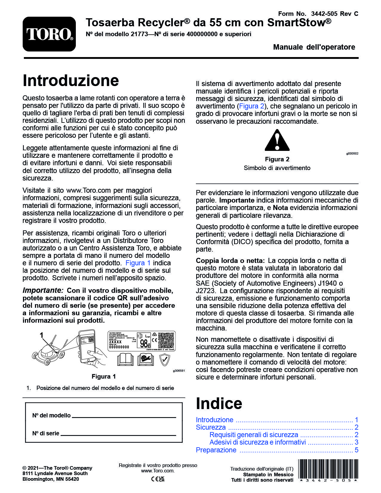 *Il risparmio di spazio è relativo allo spazio occupato da un tosaerba con operatore a terra Toro® da 56 cm riposto con la maniglia in posizione operativa standard.