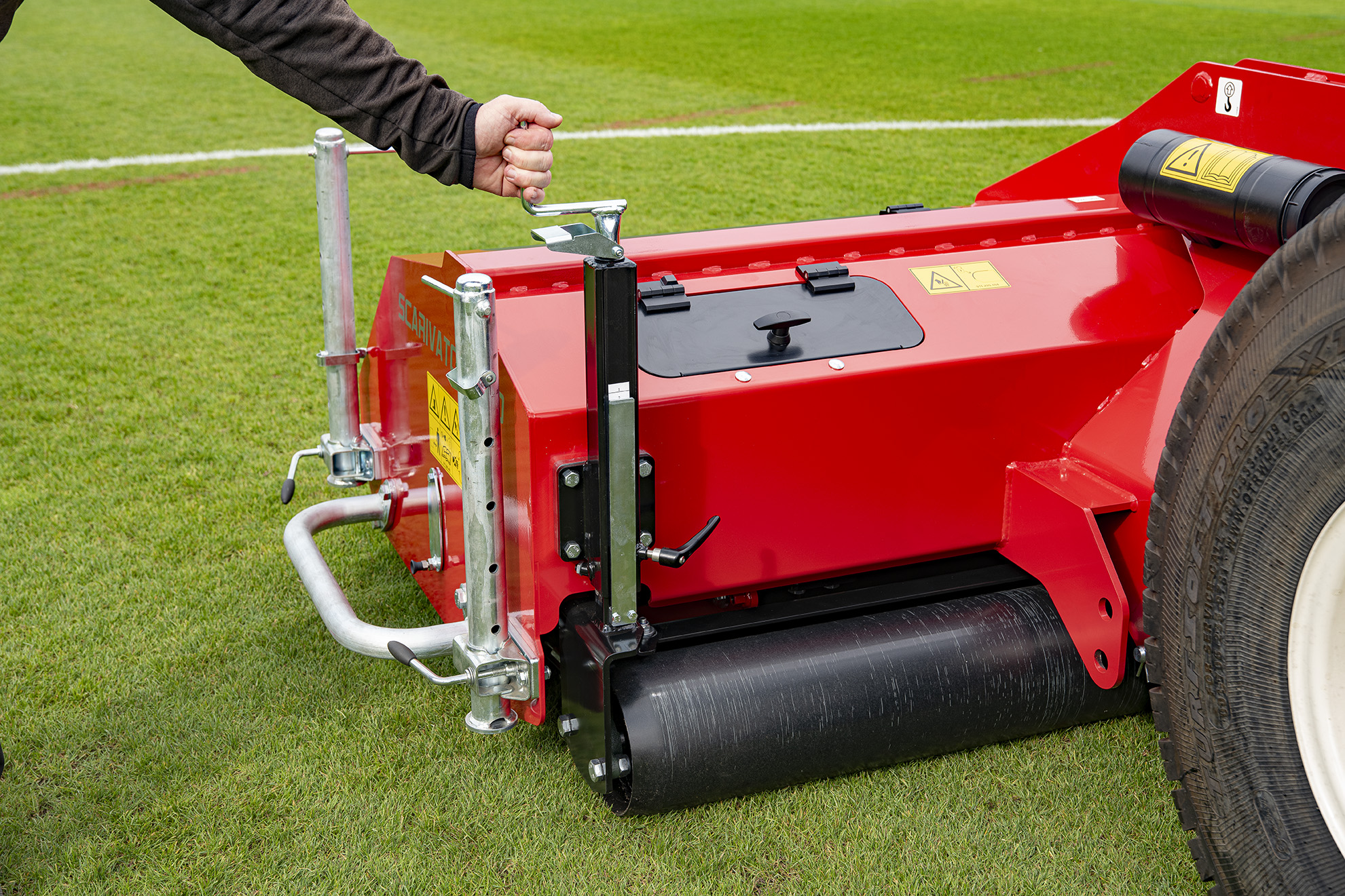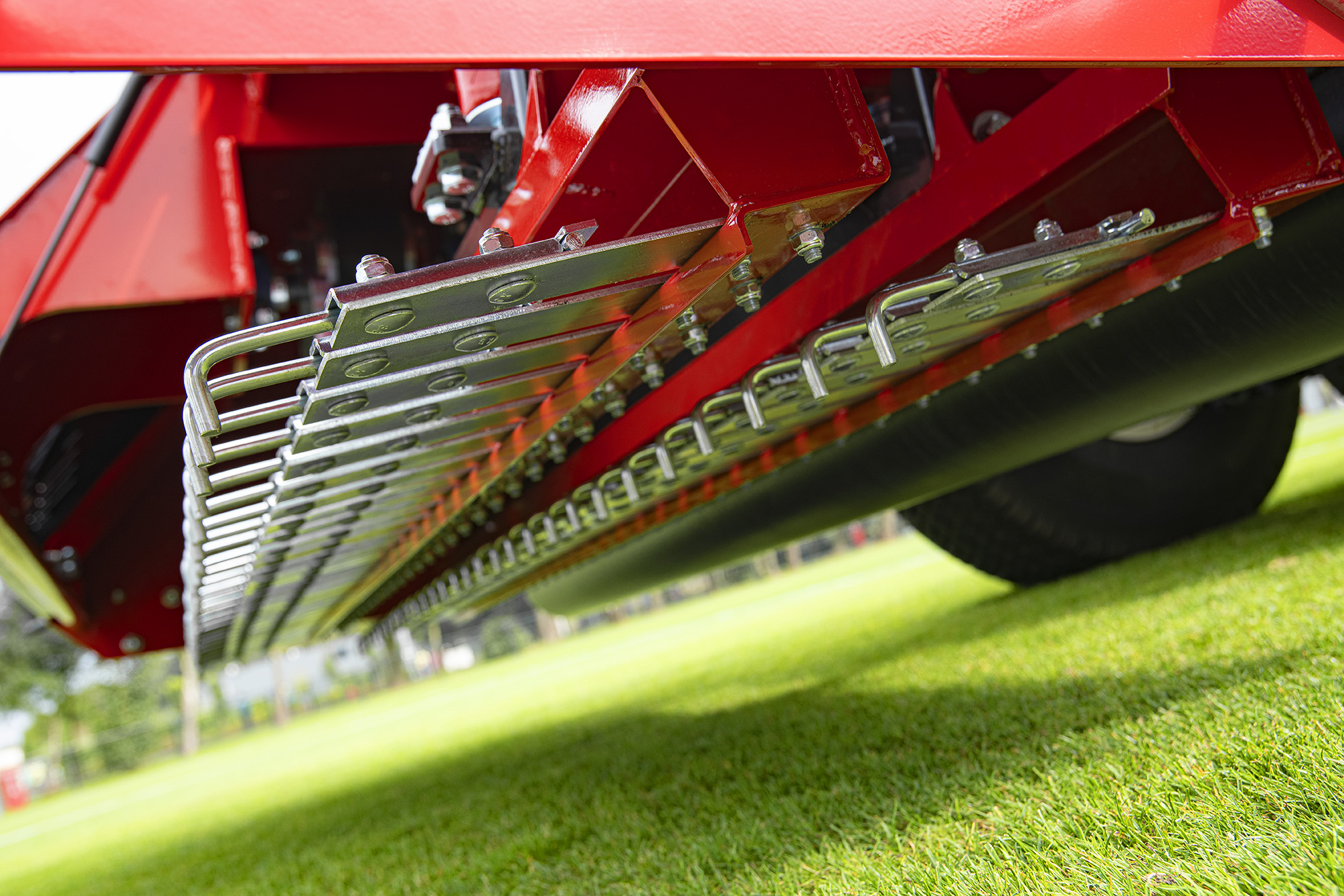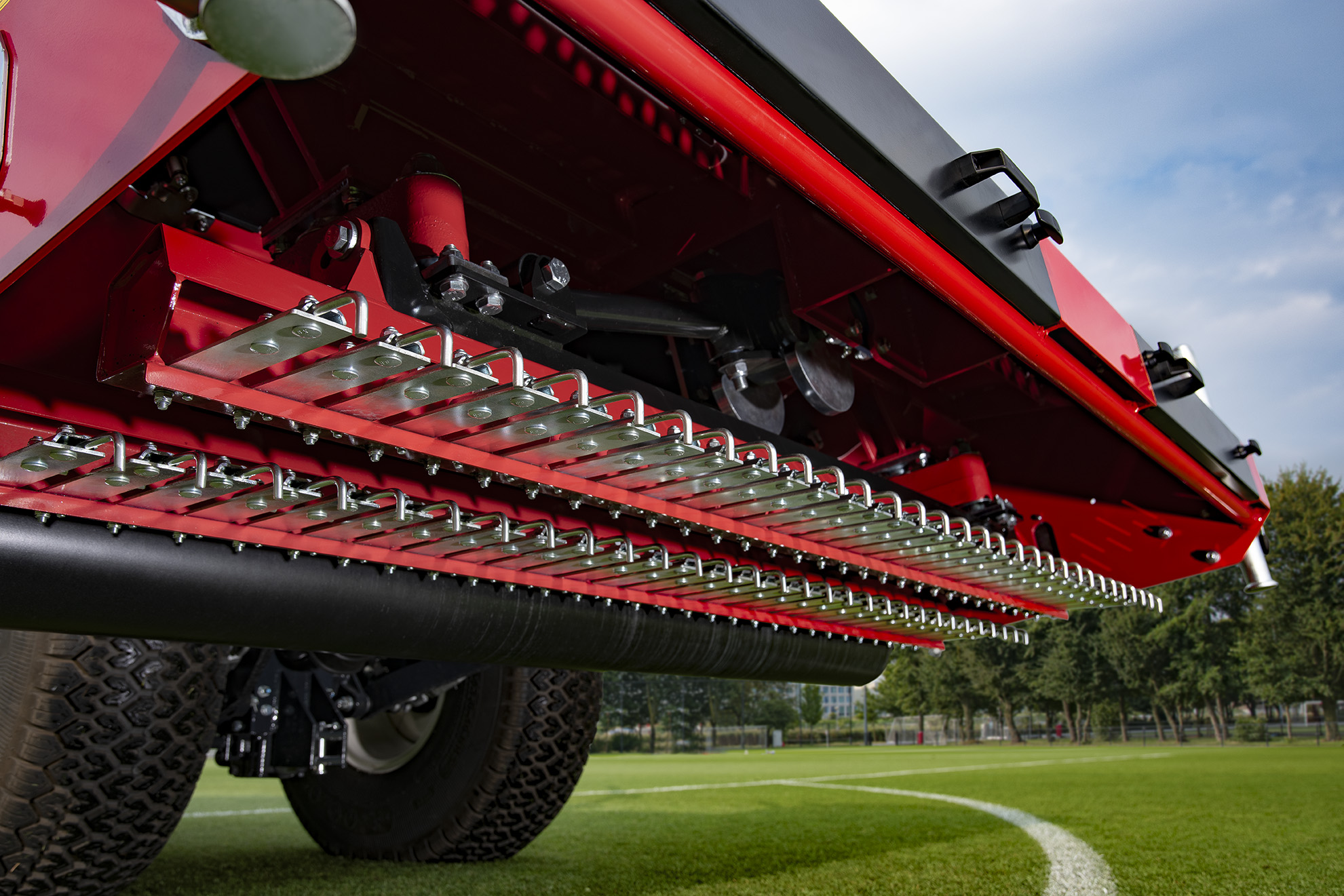 L’aggressività della Scarivator è sufficiente a rimuovere il materiale organico, senza danneggiare i materiali sintetici. Mentre i chiodi lavorano e setacciano la superficie, svolgono una funzione ulteriore di appianamento rastrellando i punti alti e spingendo il materiale verso i punti più bassi. La Scarivator può essere usata su campi ibridi a tappeto e cuciti, su terreni naturali e su terreni sintetici. Richiede 40 CV di potenza e pesa 626 kg.