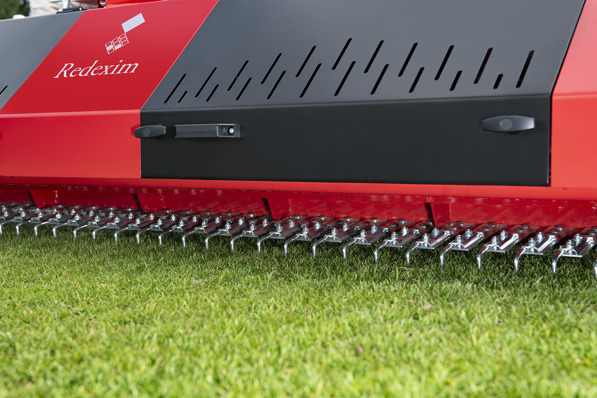 Scarivator di Redexim offre migliori risultati nel rinnovamento delle superfici ibride. Utilizzando 2 gruppi di chiodi alternanti, smuove il materiale organico e lo estrae dalla superficie senza danneggiare le fibre sintetiche. Profondità di lavoro regolabile fino a 3.5 cm e un’ampiezza dell’area di lavoro di 210 cm.