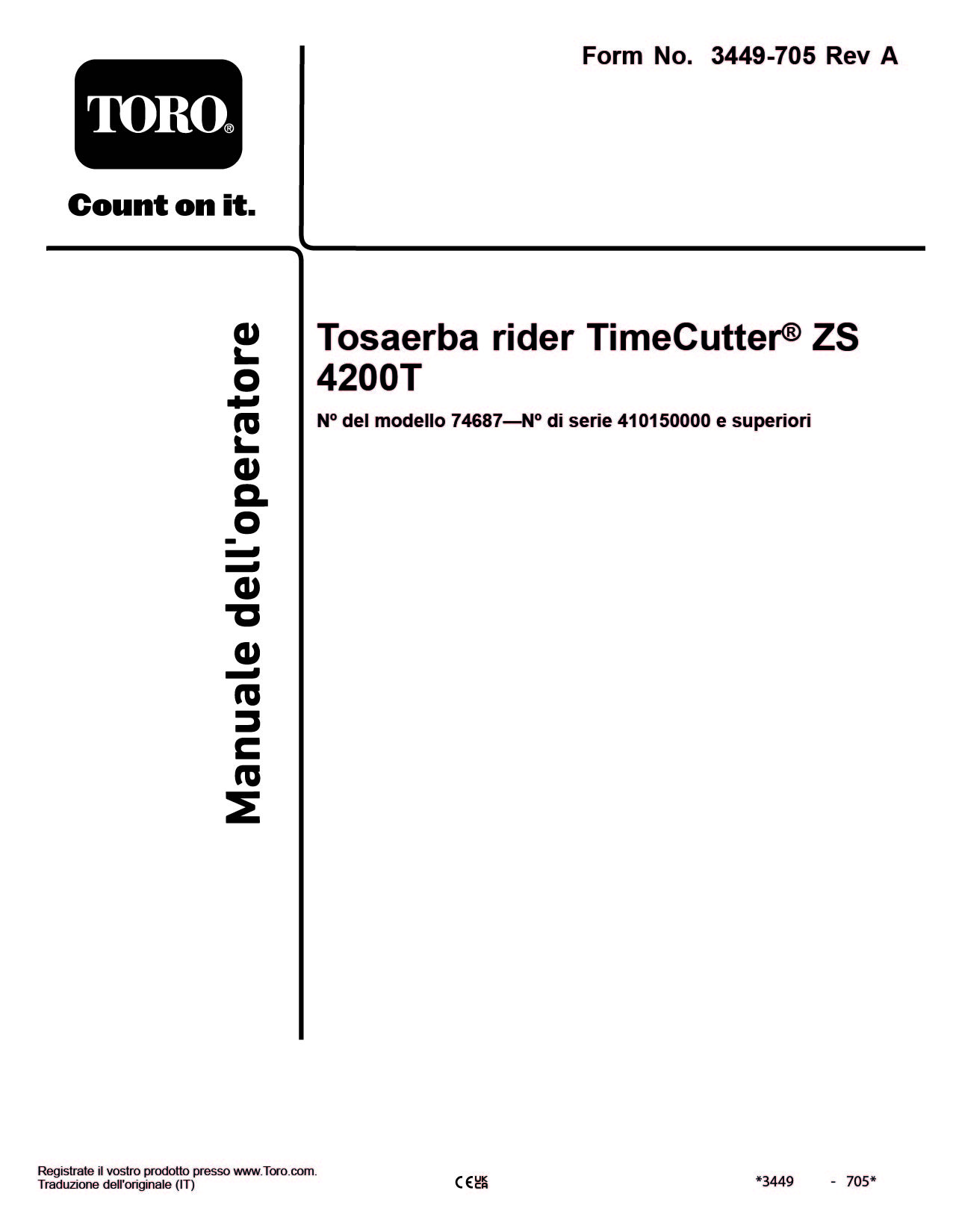 | Motore | bicilindrico, Toro OHV |