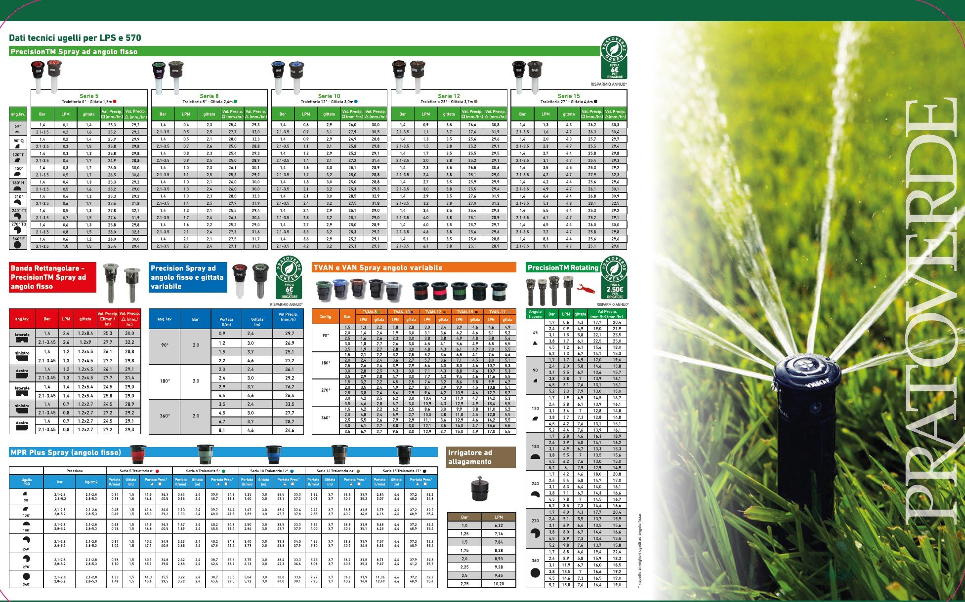 Gli ugelli Precision forniscono un tasso di precipitazione (25mm/h) che è il primo del settore, per ottimizzare la velocità di penetrazione nel suolo. Il minore tasso di precipitazione, unito all’elevata uniformità di distribuzione, rende questa serie di distributori la più efficiente nella categoria da 1,5-4,6 m