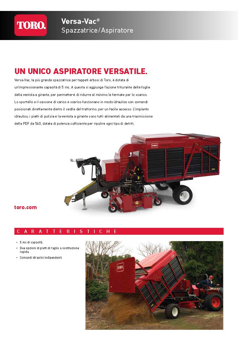 Il Versa-Vac™ di Toro svolge complesse operazioni di gestione dei detriti per soddisfare le vostre esigenze di raccolta. La tramoggia estremamente ampia semplifica anche le operazioni di pulizia più impegnative.