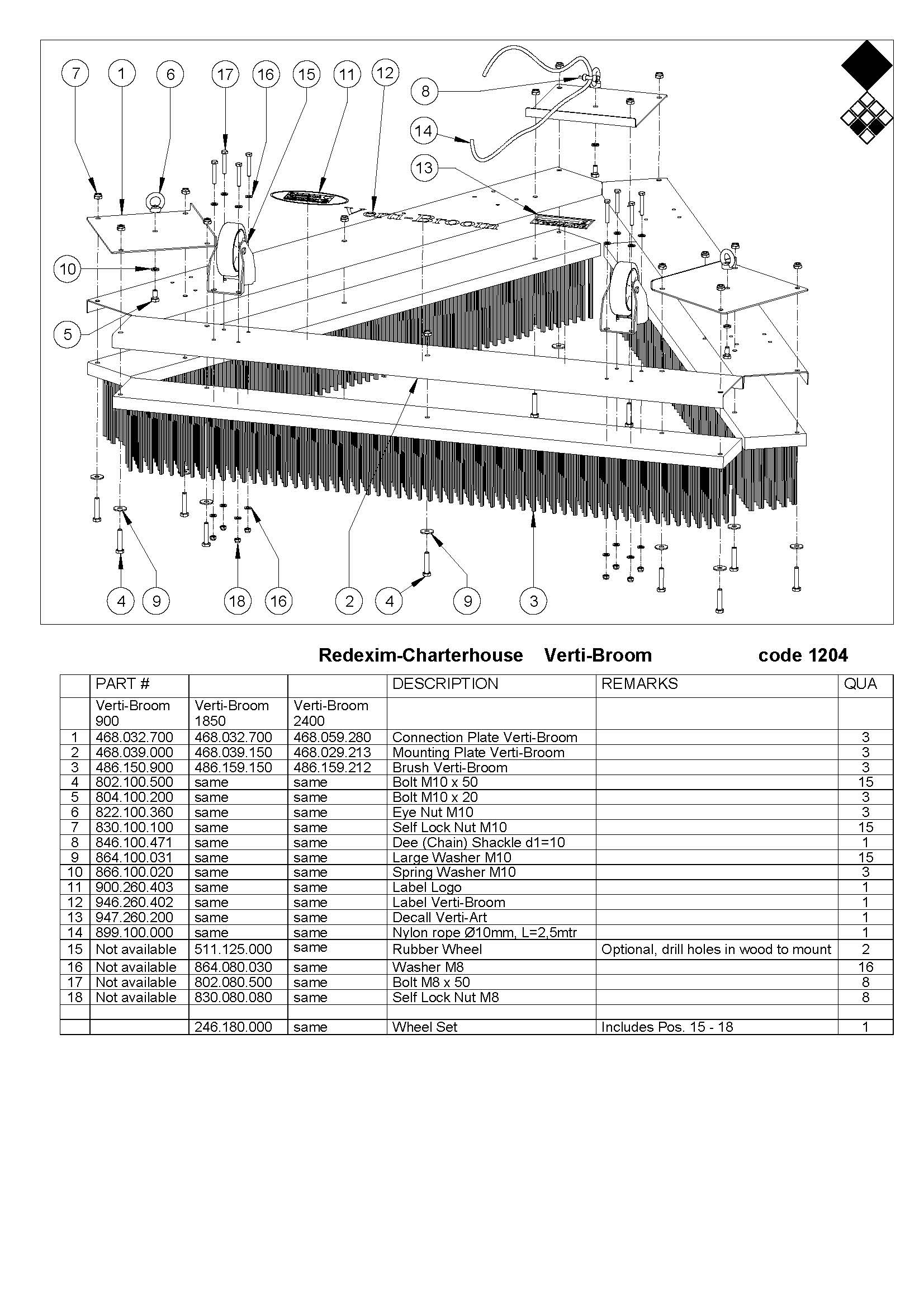 Per una larghezza operativa maggiore valutare le Verti-Broom 240 cm o per una larghezza operativa inferiore valutare la Verti-Broom 100 cm