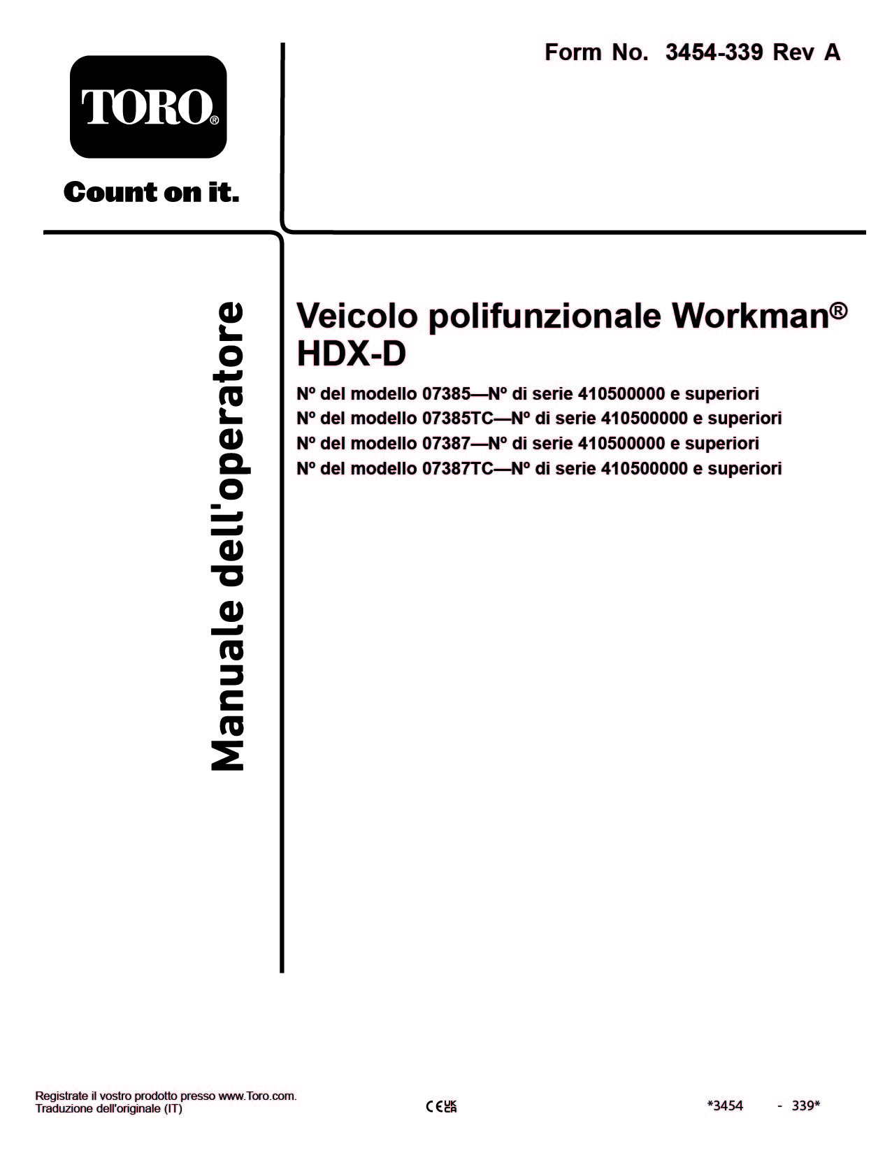 Oltre a trasportare o trainare, il Workman® può eseguire diversi lavori grazie ad accessori come il portaugello da 757 litri, la concimatrice Vicon®, la piattaforma di sollevamento verticale, la piattaforma aerea Patriot® e gli spandisabbia. Numerosi accessori ne migliorano la versatilità, tra cui il tettuccio, il parabrezza pieghevole, i vari kit di luci, la cabina rigida Deluxe, i vari cassoni fissi, la struttura antiribaltamento ROPS, l’apertura automatica della sponda, la presa di forza posteriore e altri.